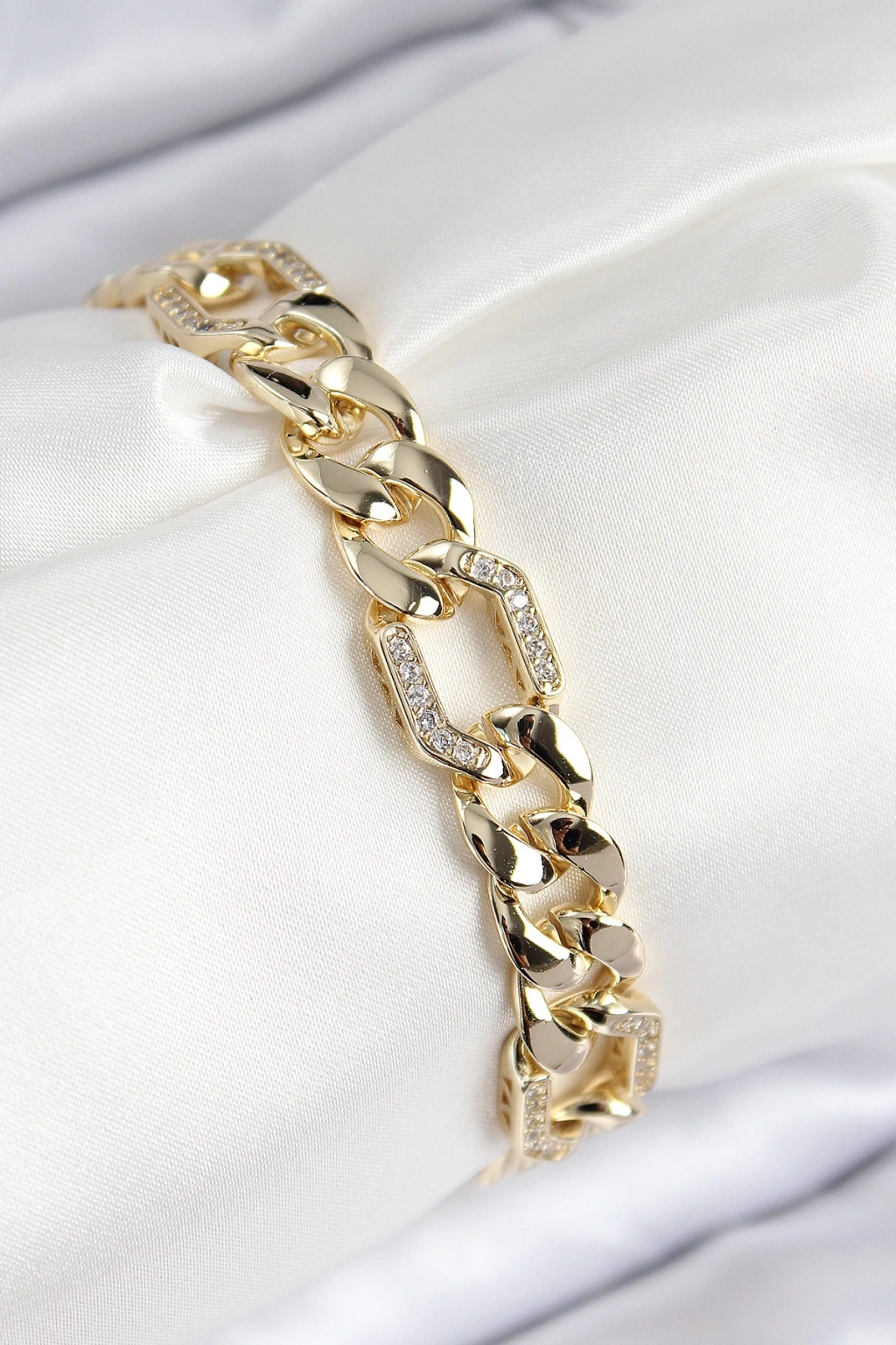 Dodes Dodes VIP Pirinç Zirkon Taşlı Parçalı Zincir Model Gold Renk Kadın Bileklik TG27BB7767