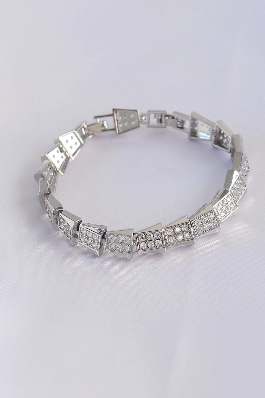 Dodes Dodes Vip Seri Pirinç Zirkon Taşlı Gümüş Renk Geometrik Bileklik TG27BB6059
