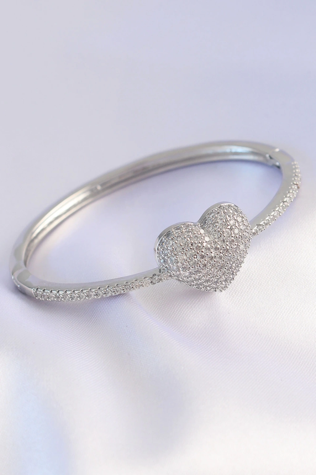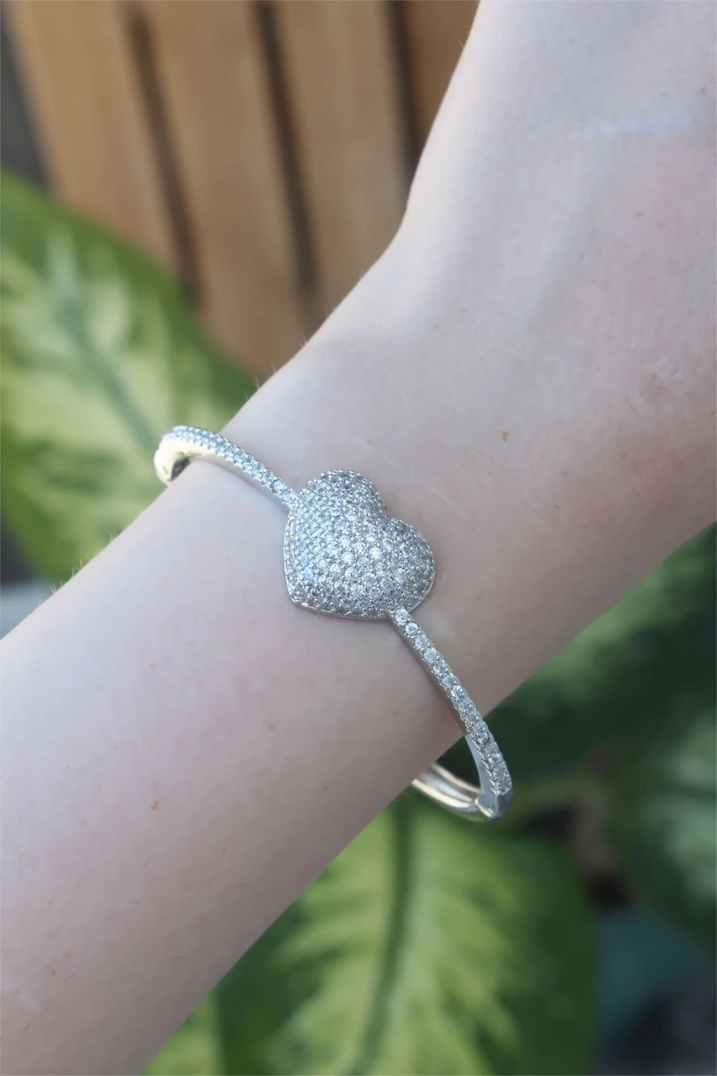 Dodes Dodes Vip Seri Pirinç Zirkon Taşlı Gümüş Renk Kalp Model Kelepçe TG27BB6082