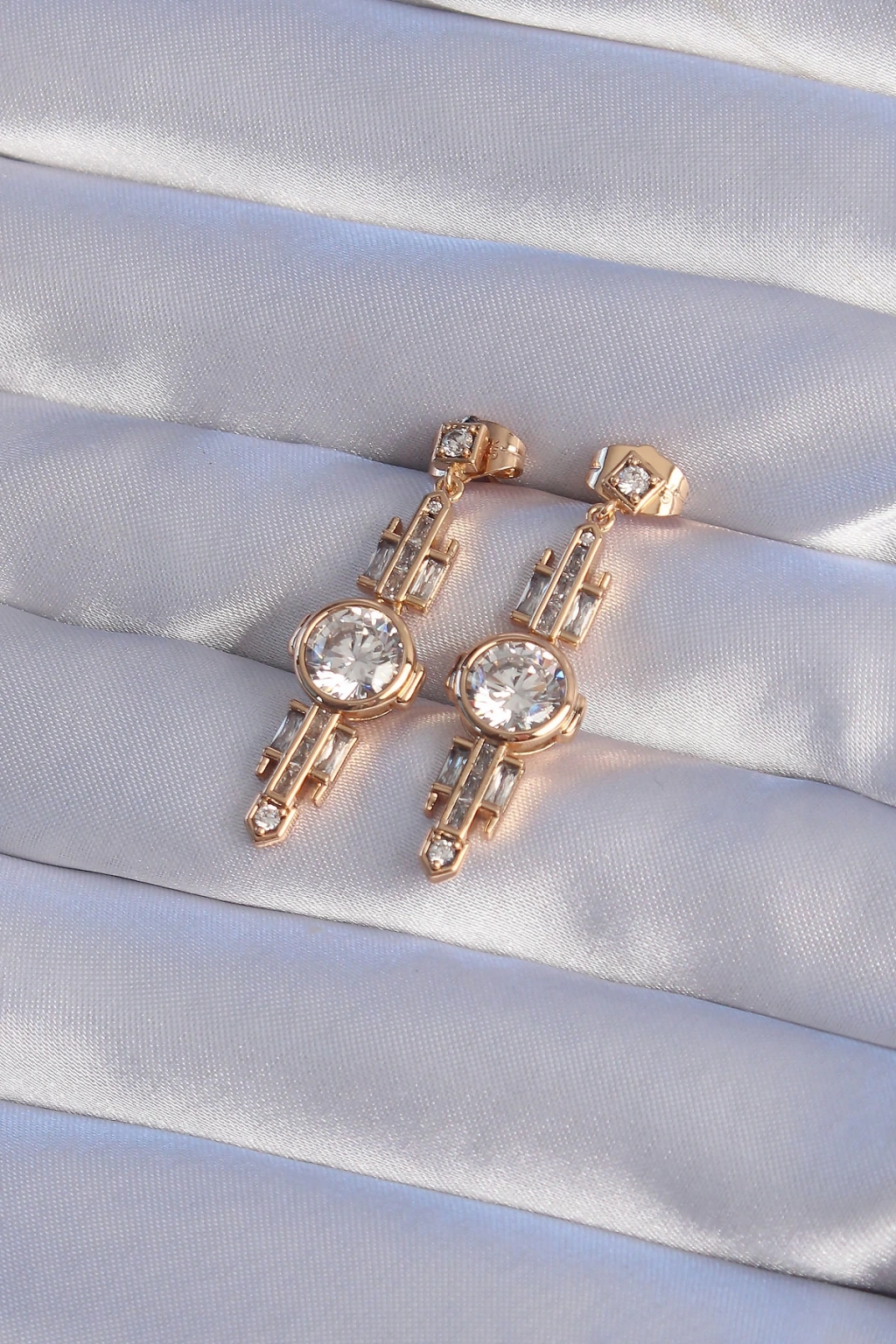 Dodes Dodes XUPİNG Rose Renk Zirkon Taşlı Geometrik Sallantılı Küpe TG27BKP9355