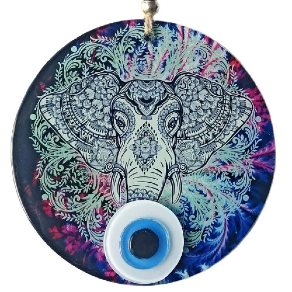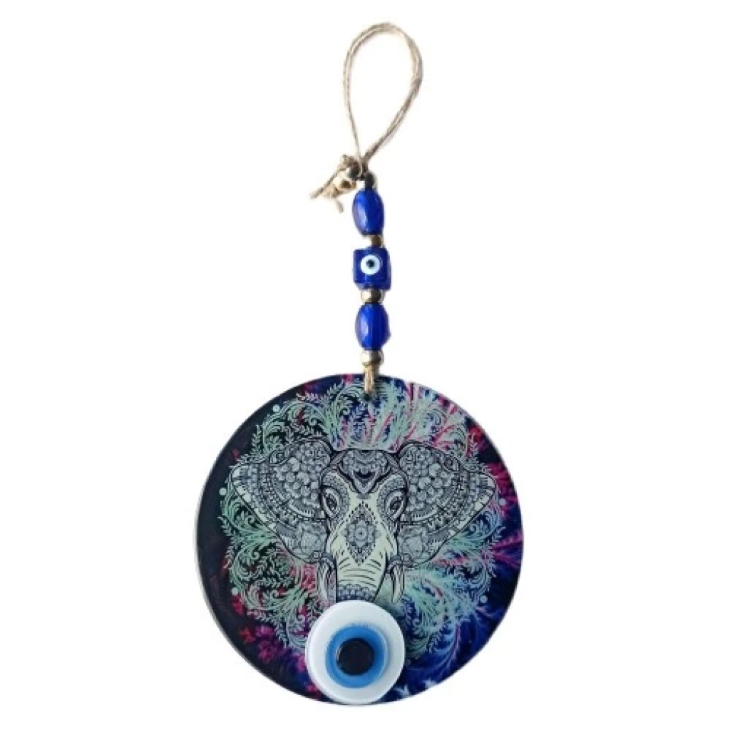 Dodes Fil Figürlü Nazar Boncuklu Füzyon Cam Duvar Süsü