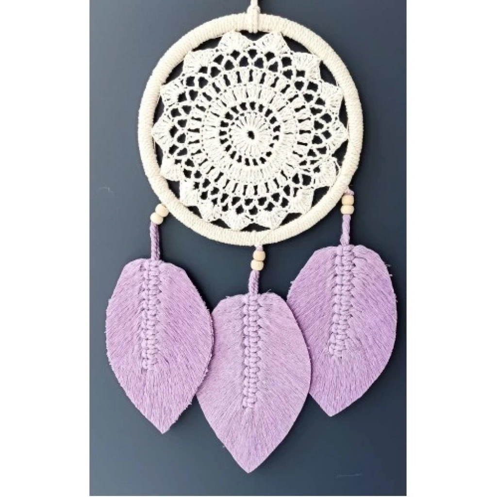 Dodes Lila Rengi Yapraklı El Yapımı Makrome Duvar Süsü