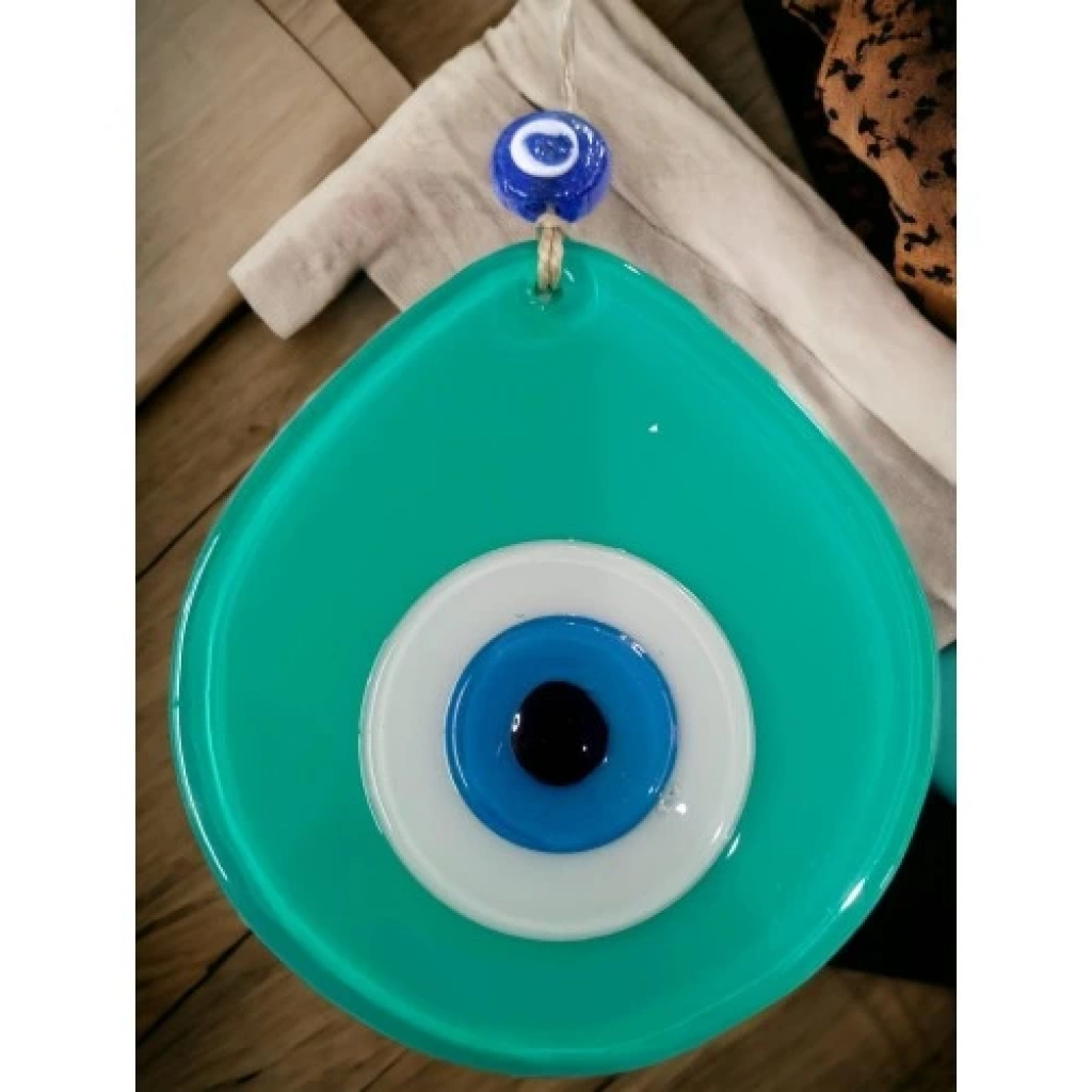 Açık Yeşil renk nazar boncuklu duvar süsümüz tamamen el işçiliği ile üretilmiştir. Tasarım harikası el yapımı nazar boncuklu duvar süsümüz 13 x 12 santimetre ölçülerindedir. Ürünümüz ip dahil 21 santimetre boyundadır.