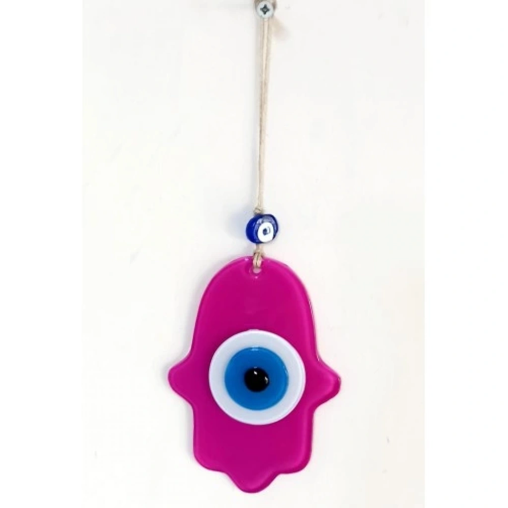 Dodes Nazar Boncuklu Fuşya Renk Fatma Ana Bereket Eli Cam Duvar Süsü