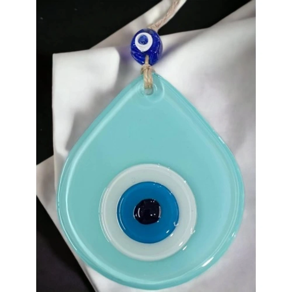 Mini turkuaz renk nazar boncuklu duvar süsümüz tamamen el işçiliği ile üretilmiştir. Tasarım harikası el yapımı nazar boncuklu duvar süsümüz 10 x 12 santimetre ölçülerindedir. Ürünümüz ip dahil 21 santimetre boyundadır.