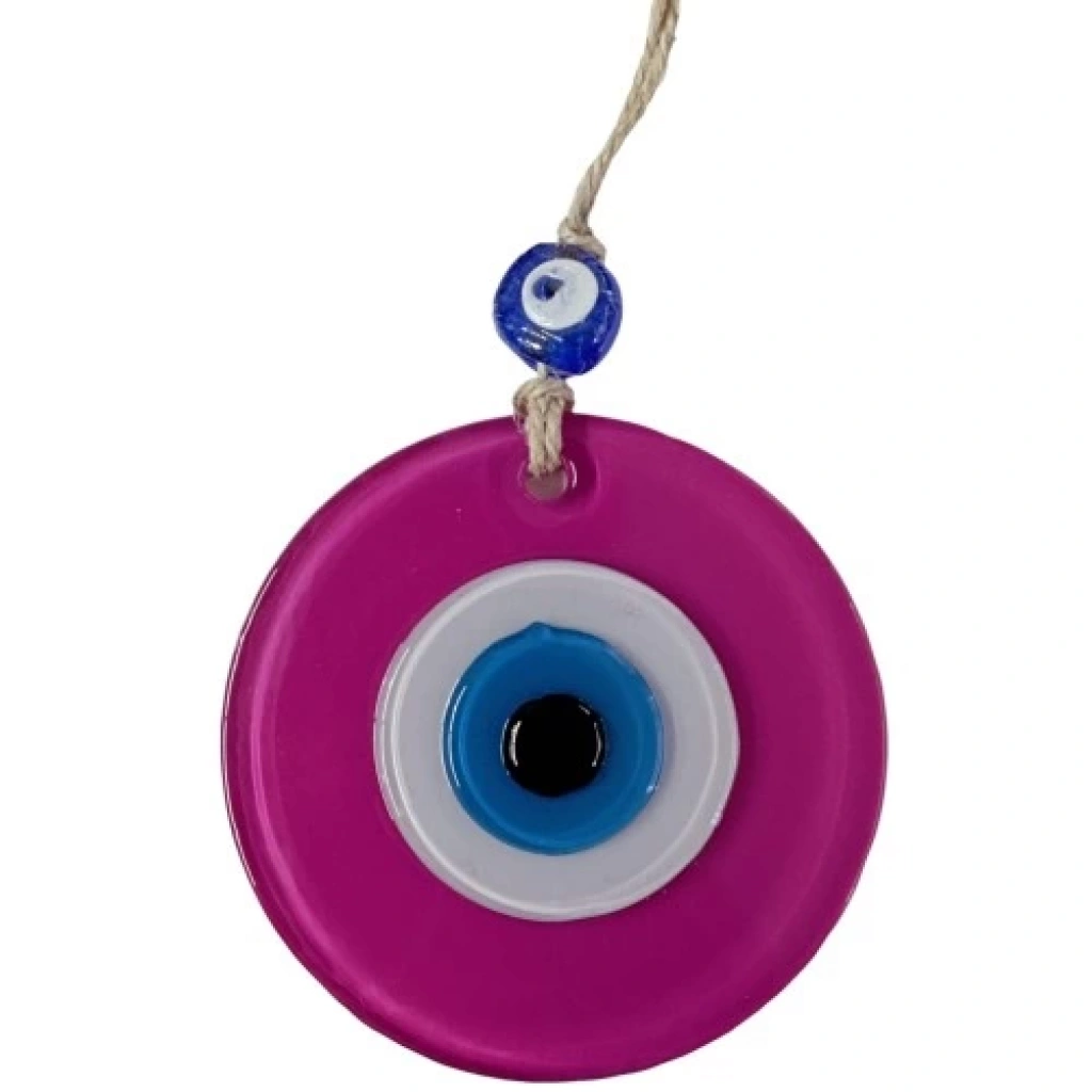 Mini boy pembe renk nazar boncuklu duvar süsümüz tamamen el işçiliği ile üretilmiştir. Tasarım harikası el yapımı nazar boncuklu duvar süsümüz 10 x 10 santimetre ölçülerindedir. Ürünümüz ip dahil 23 santimetre boyundadır.