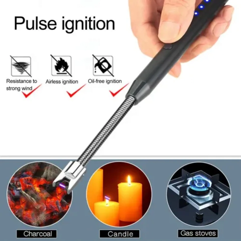 ŞARJLI ESNEK ÇAKMAKHer Koşulda Güvenilir AteşlemeMini boyutuyla seyahat, kamp ve yürüyüş gibi çoğu durum için mükemmel olan bu ince ve kompakt elektrikli ateşleyici, fazla yer kaplamadan sırt çantanızda rahatlıkla taşınabilir. Aktif ark tutucuları sayesinde, güçlü rüzgarlar, ıslak hava koşulları ve diğer olumsuz hava şartlarında bile üflenmesini önleyen alevsiz plazma teknolojisi ile tasarlanmıştır. Metal malzemeden üretilmiştir ve dayanıklılığı ile öne çıkar.Boyutlar:	•	Uzunluk: 27.5 cm	•	Genişlik: 1.7 cm	•	Kalınlık: 1.15 cmÖzellikler:	•	Kullanımı kolay	•	360 derece rotasyon	•	Rüzgar geçirmez tasarım	•	Pil kapasitesi: 180 mAhPaket İçeriği:	•	1 x Elektrikli Ateşleyici	•	1 x USB Şarj AletiNot:	•	Işık ve ekran ayar farkı nedeniyle, ürünün rengi resimlerden biraz farklı olabilir.	•	Farklı manuel ölçümler nedeniyle hafif boyut farklılıkları olabilir.Bu elektrikli ateşleyici, evde, kampta, yürüyüşte ve daha birçok alanda mükemmel kullanım sunar.