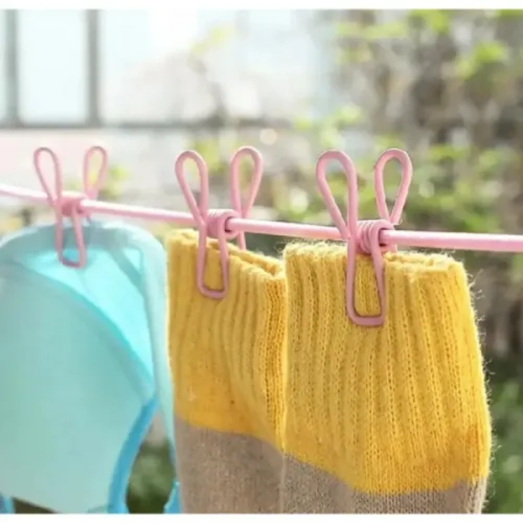 Taşınabilir yapısıyla hem evde hem de seyahatlerde kullanım kolaylığı sağlayan mandallı çamaşır ipi, entegre mandalları sayesinde çamaşırları güvenli bir şekilde asmanıza olanak tanır. Esnek ve dayanıklı ip yapısı farklı yerlere kolayca gerilerek sabitlenebilir. Üzerinde sabit olarak yer alan mandallar ekstra bir aparata ihtiyaç duymadan pratik kullanım sunar. İç ve dış mekânlarda kullanıma uygundur. Hafif yapısı ile valizlerde yer kaplamaz, kamp, piknik gibi açık hava aktiviteleri için de idealdir. Ürün farklı renklerde mevcuttur ve karışık gönderim sağlanır.